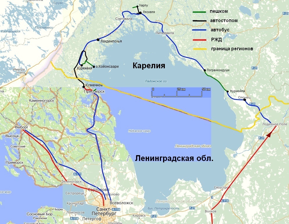 Далее в двух критических точках путешествия очень кстати помогли люди (подвозили, по своей инициативе, я нигде ни разу не голосовал), чем сэкономили мне ещё не меньше суток - в результате удалось съездить в Выборг на 2,5 суток.