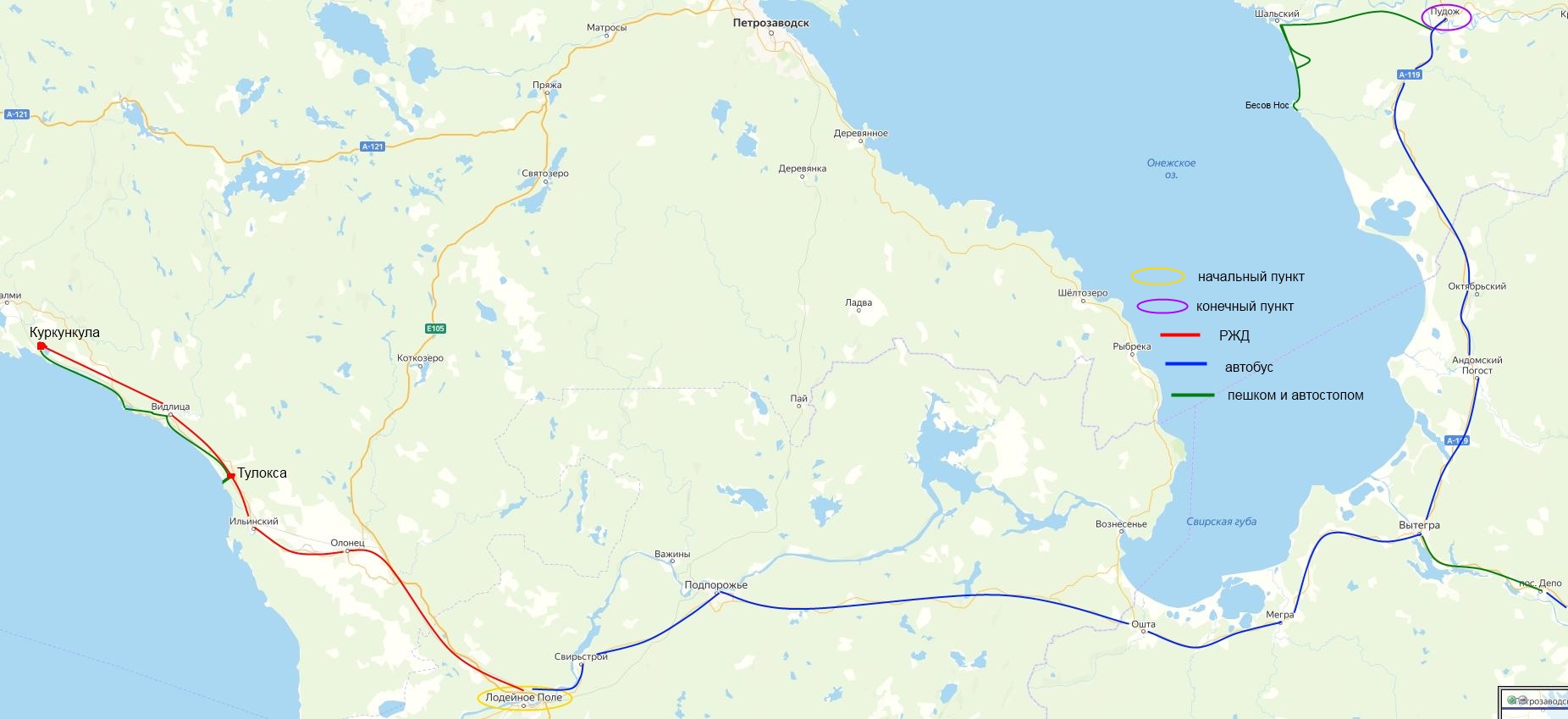 Т.к. билеты на питерский автобус от Лодейного Поля до Саминского Погоста (реально - до Пудожа) были куплены заранее, то пришлось вместо 4-го дня на Ладоге переночевать в Лодейном Поле, врачуя, по возможности, ногу (из-за которой пришлось поменять дальнейший план по Онеге).