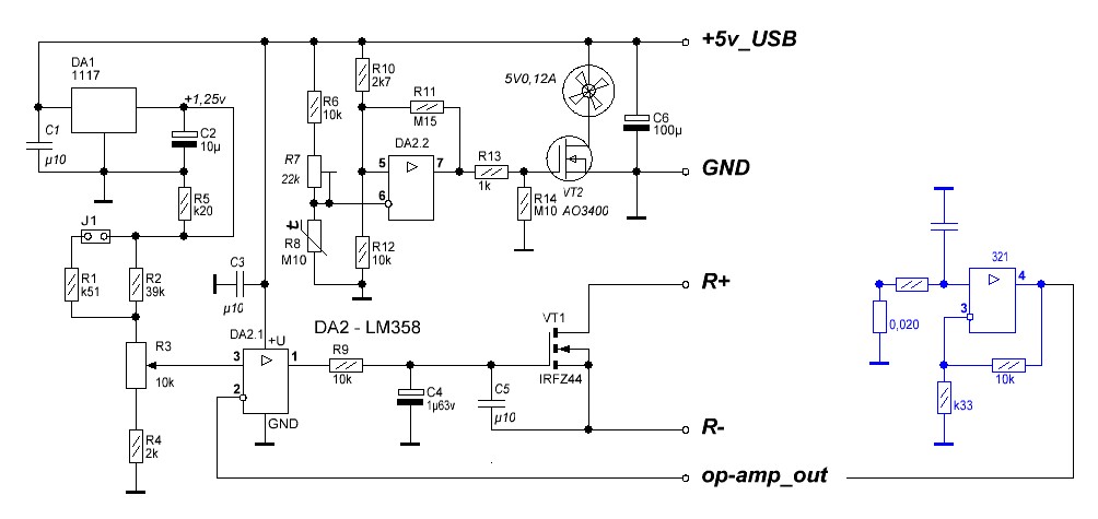 Вторая половина ОУ используется для управления вентилятором - всё передрано отсюда и отсюда.