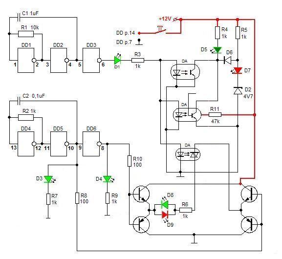 Правда в этой схеме реально можно проверить оптопару, ибо можно сделать On/Off.
