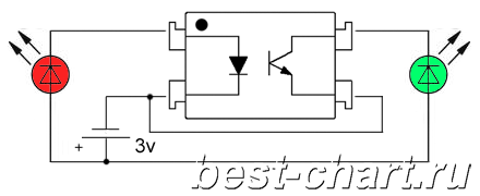 2. Ограничительные резисторы? Не, не слышал... Ток через выходной транзистор и светодиод ограничен только сопротивлением открытого транзистора и внутренним сопротивлением батарейки. А если выходной транзистор прошит или входной светодиод? Бедная батарейка!
