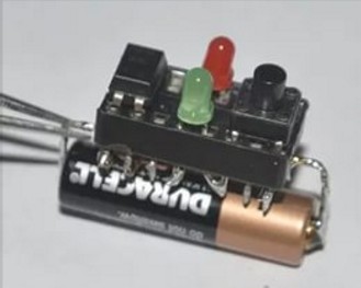 Сделано по схеме "намба ван", но питается не от "пятака" на 3 вольта, а от обычной пальчиковой на 1,5 вольта. Два светодиода последовательно от 1,5v - perpetuum mobile отдыхает!