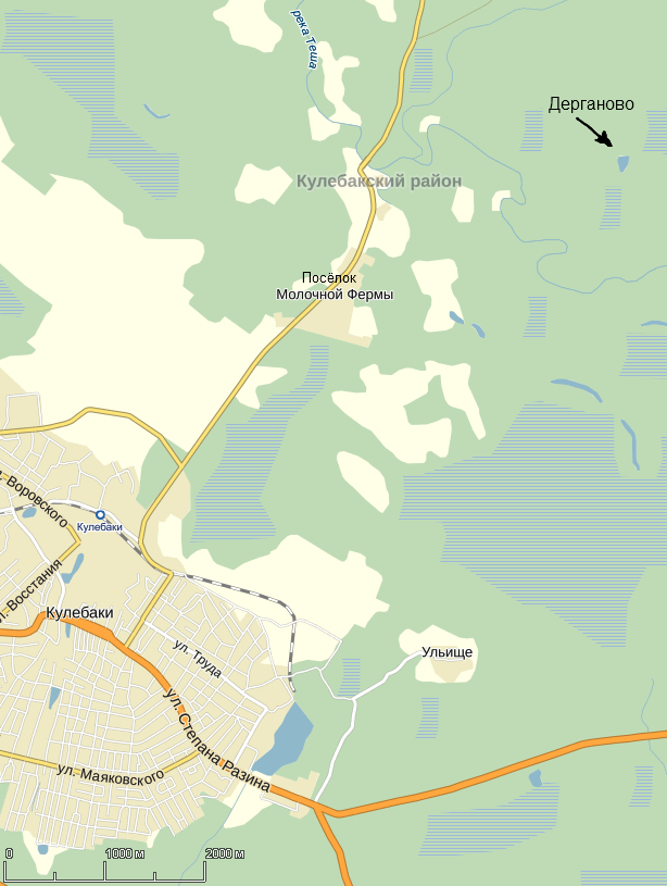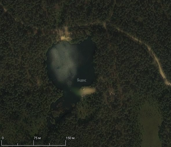 Вид со спутника. Виден масштаб. Размер озера примерно 120х150м.