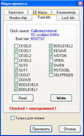 Только не забудьте: галочка = unprogrammed = 1 (для AB!).