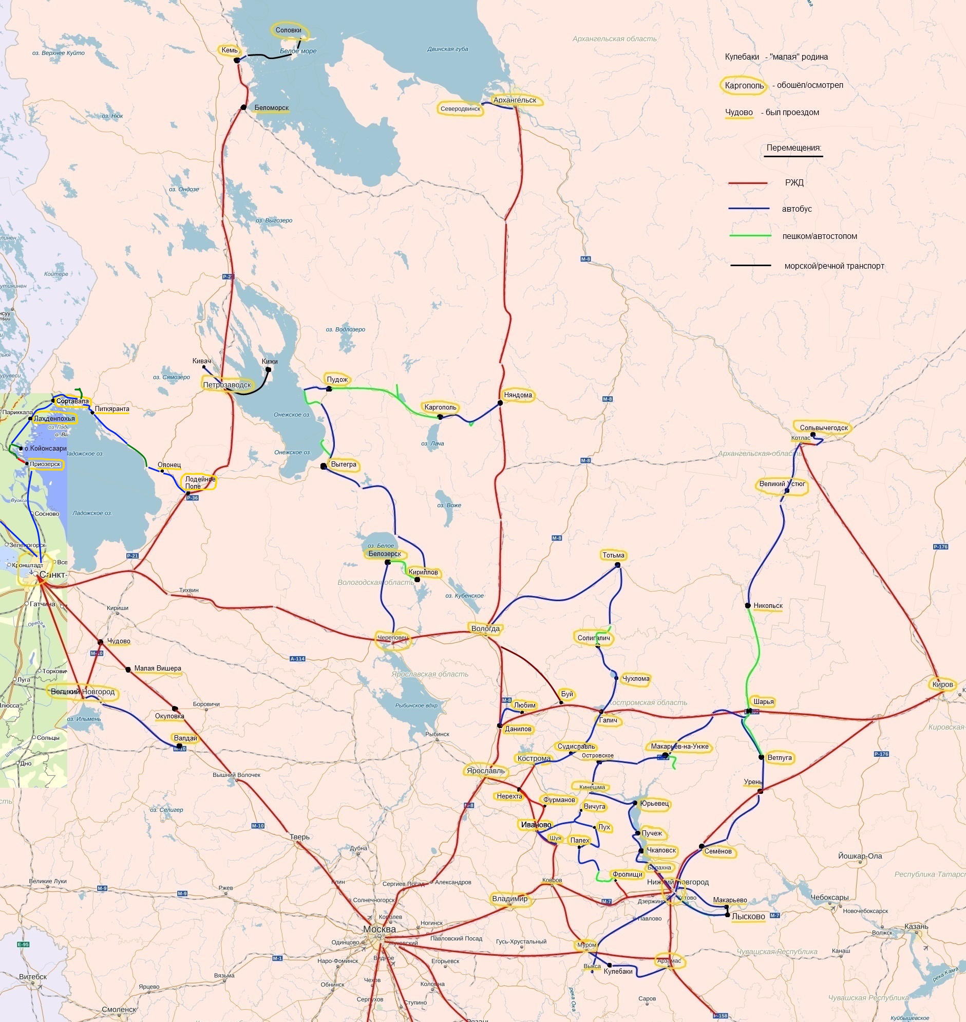 Обзорная карта моих путешествий с 2005г.