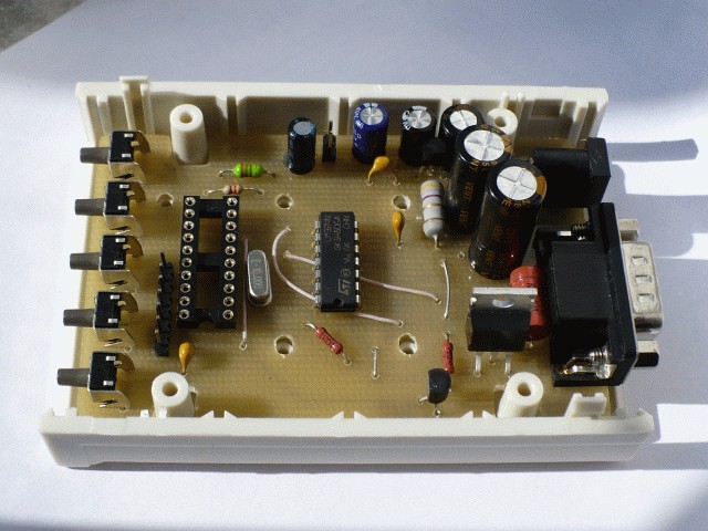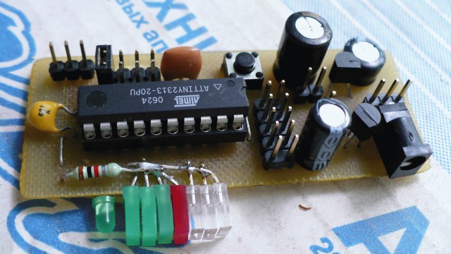 Таким образом уже нет переменных резисторов, на передней панели теперь 5 кнопок и 4 светодиода.