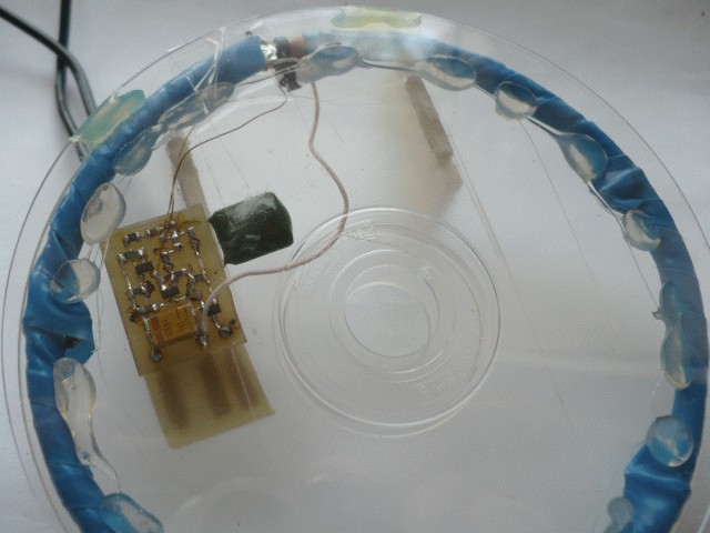 Питание - от аккумулятора ёмкостью 1,2A*h, помещенного в корпус Z5a, половинки которого скреплены