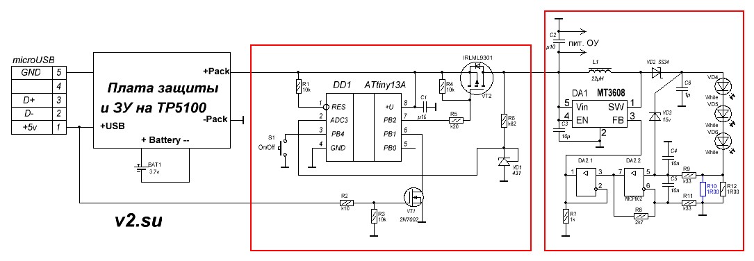 Стабилитрон спасает чип MT3608 при обрыве цепочки LED или проводки (при испытаниях).